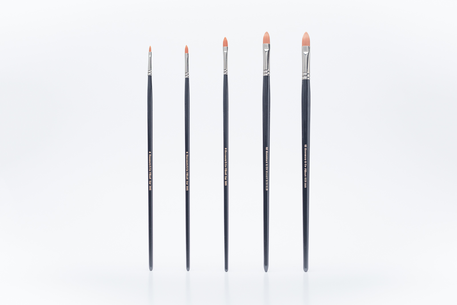 Rosemary maakt al 39 jaar penselen. Rosemary Thompson over haar merk: Ik heb het geluk dat ik door mijn beroep de wereld rond heb kunnen reizen, zowel op zoek naar materialen als naar verschillende productiestijlen. Dankzij deze bronnen vind ik mijn eigen methoden voor het maken van penselen en train ik mijn team ‘op mijn manier’. Ik heb een team van zeer bekwame penseelmakers opgeleid om dit voorbeeld te volgen.