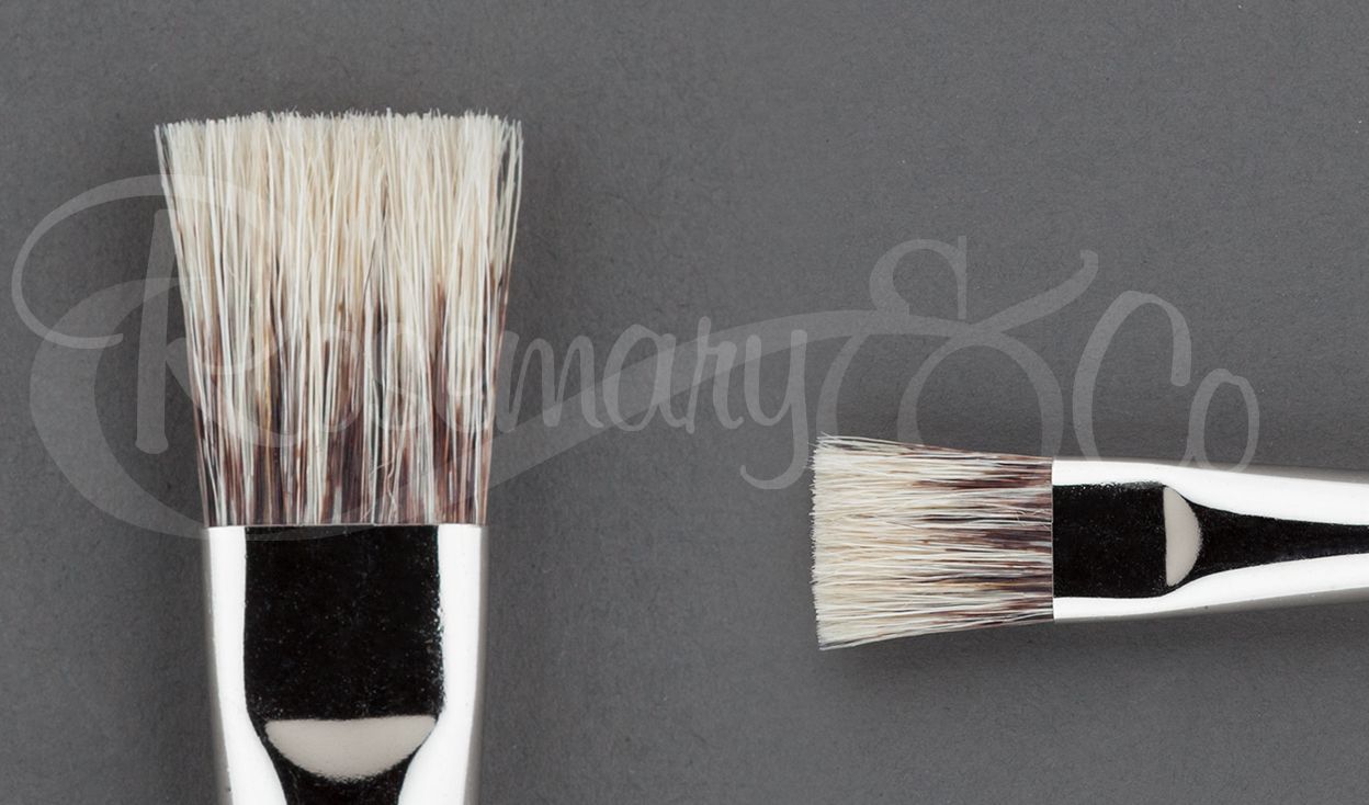 Rosemary maakt al 39 jaar penselen. Rosemary Thompson over haar merk: Ik heb het geluk dat ik door mijn beroep de wereld rond heb kunnen reizen, zowel op zoek naar materialen als naar verschillende productiestijlen. Dankzij deze bronnen vind ik mijn eigen methoden voor het maken van penselen en train ik mijn team ‘op mijn manier’. Ik heb een team van zeer bekwame penseelmakers opgeleid om dit voorbeeld te volgen.